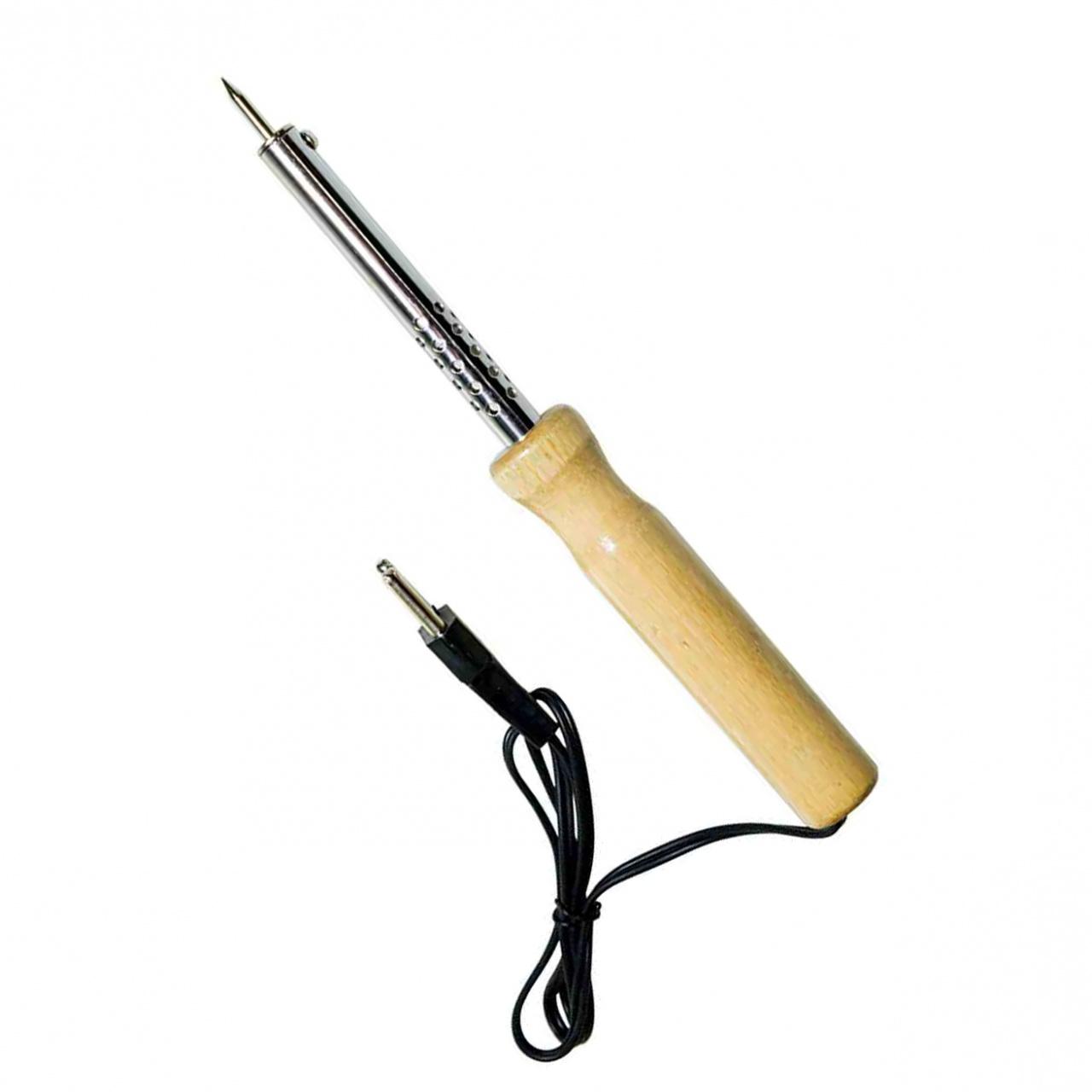 Электрический паяльник с деревянной ручкой — это компактный прибор, который используется для соединения проводов, работы с печатными платами и другими мелкими электронными деталями.