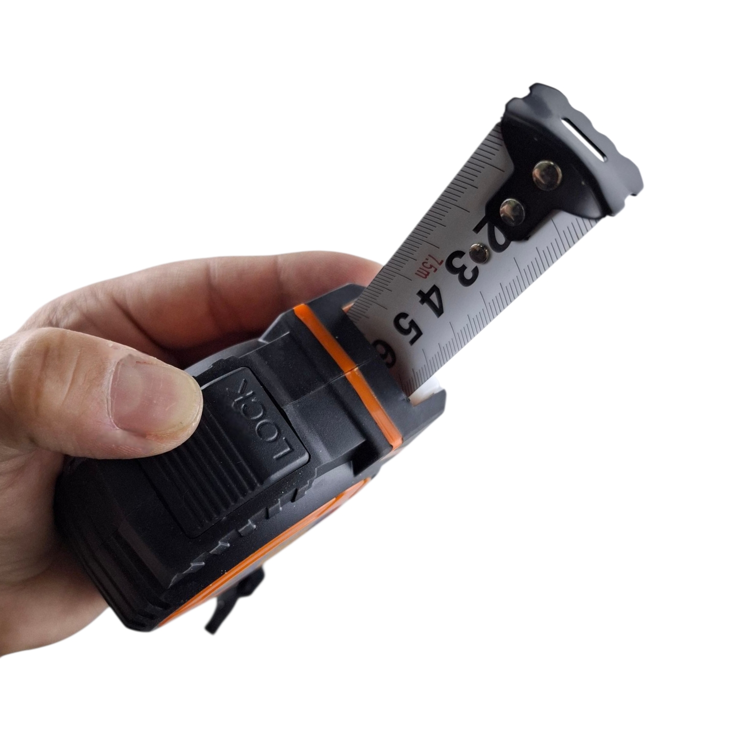 Эргономичный фиксатор позволяет работать в перчатках. Модернизированный концевой крючок надежно фиксируется на поверхности для точного замера.