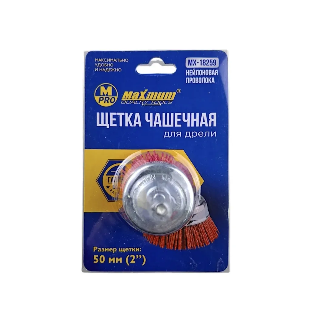 Это нейлоновая щетка-чашка (диаметром 50 мм или 2 дюйма), которая крепится в патрон дрели или шуруповерта через резьбовую шпильку. Щетка с нейлоновым ворсом от "Maximum Quality Tools" предназначена для бережной, но эффективной абразивной обработки поверхностей.